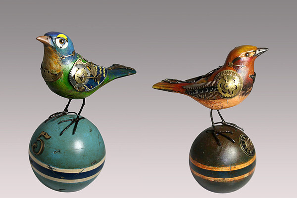 Джим Мулланни (Jim Mullani) и его жена Тори (Tori) создают удивительные скульптуры в стиле стимпанк. Предмет их вдохновения – певчие птицы, которых они выпускают под маркой Mullanium.