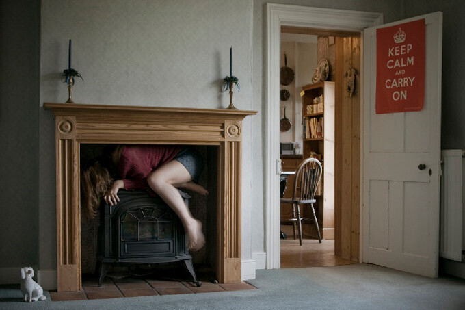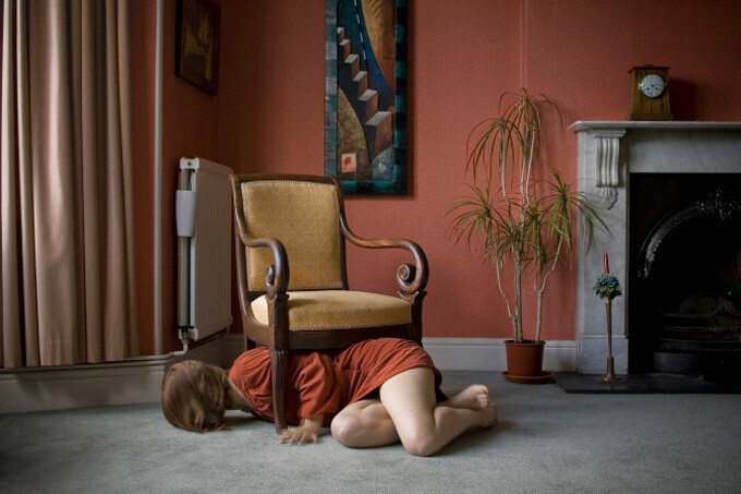 Вспомним детскую игру в прятки. Эта фотосессия посвящена именно ей. Фотограф Альма Хайзер ставит спуск фотоаппарата на 10 секунд, а сама в это время пытается занять как можно меньше места в поле зрения объектива. Получается это у нее плохо, но лица тем не менее мы не видим.