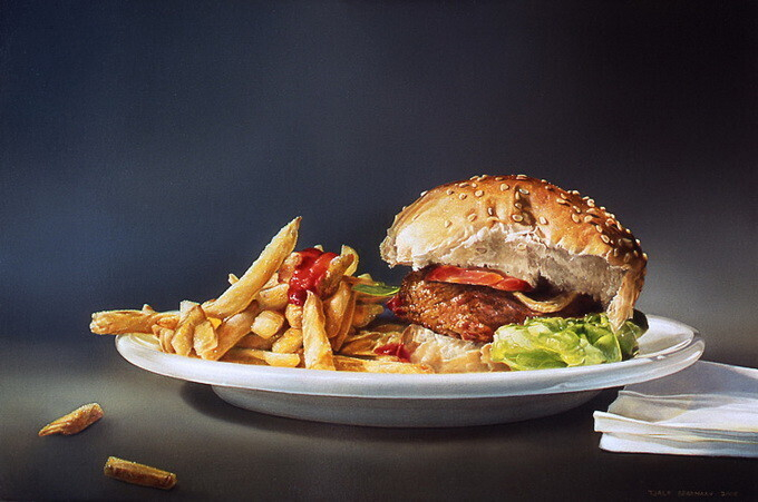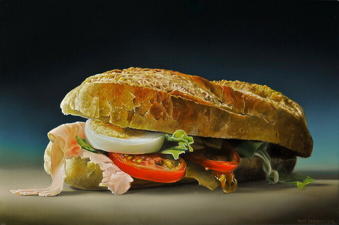 Работы фотохудожника Тьялф Спарнэей (Tjalf Sparnaay) относятся к жанру мегареализма и передают, как говорится, все трещинки изображаемых предметов. Тьялф работает с 1987 года ,в основном фотографирует еду, а оригиналы его работ стоят от 10.000 и 45,000€.