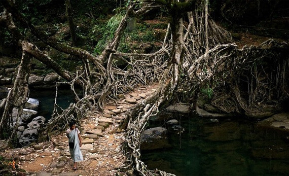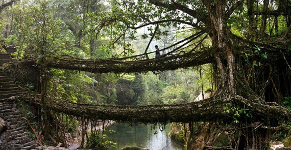 Мост из корней в Индии