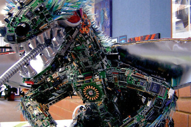 Совершенно неожиданные предметы иногда могут стать идеальным материалом для творчества. Так, Шон Эйвери (Sean Avery), иллюстратор детских книг и графический дизайнер из Австралии, создает удивительные скульптуры из старых CD-дисков и деталей электроники. Получается действительно очень красиво.