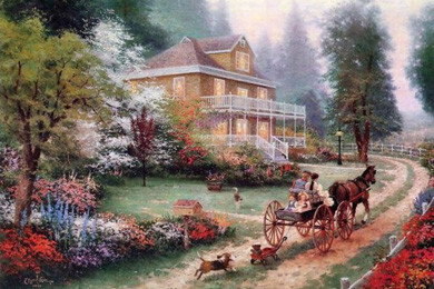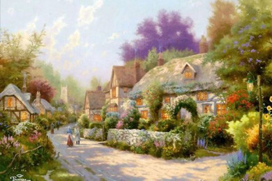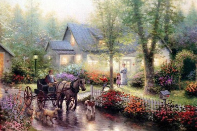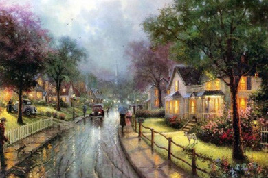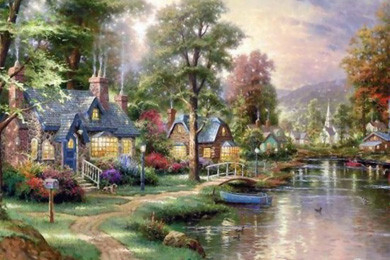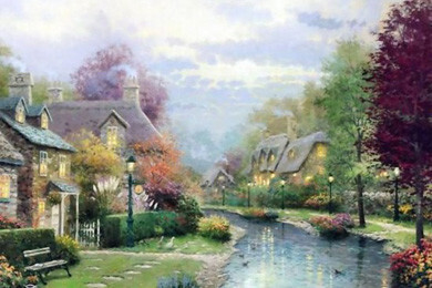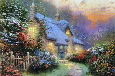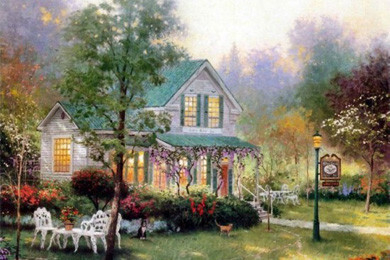 Эти красивые картины — само воплощение мечты об уютном доме в самом живописном месте — хорошо знакомы нам по многочисленным открыткам и паззлам. Их автор — Томас Кинкейд (Thomas Kinkade), художник из Америки, которого пресса называет «Мастером Света». Он является самым коллекционируемым художником в мире из ныне живущих.