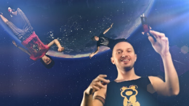 — Моей детской мечтой было кувыркаться в невесомости и преодолевать огромные расстояния с помощью звездных джампов. Мне хотелось ещё стать таким же классным, как Коля Герасимов, и чтобы меня полюбила девушка, как Алиса или ещё лучше, – вспоминает Виталий Артист. – Вторая часть мечты уже сбылась, а первая воплотилась в клипе! С состоянием невесомости после съемок еще не удалось побороться. До сих пор привязываем гирей гитариста Сашу Ивашкевича, чтобы он не улетал на концертах.