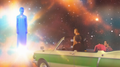 – Мне захотелось снять продолжение работы «Байконур 66», – комментирует Матвей Сабуров. – Очень уж много положительных отзывов собрал наш весёлый кабриолет, на котором мы, кстати, часто катаемся с Артистом и в жизни. За грибами, например, осенью ездили. Идея для визуализации напросилась из текста песни. Парень называет свой адрес – Планета Земля. Понятно же, что у него состоялся контакт с внеземным разумом. Как реалисты мы не собирались тягаться с фильмами «Звёздные войны» и прочими голливудскими технологиями.