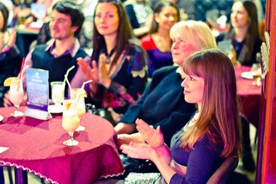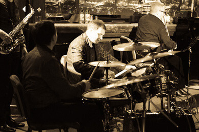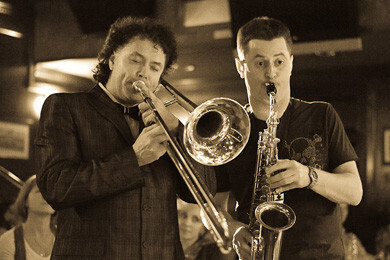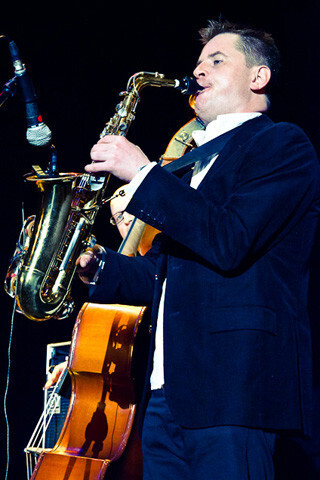 Музыканта сопровождал квартет классных музыкантов Джаз-Клуба Евгения Владимирова и более чем интересный саксофонист, который располагал к себе внимание не только игрой, но и эксцентрикой.