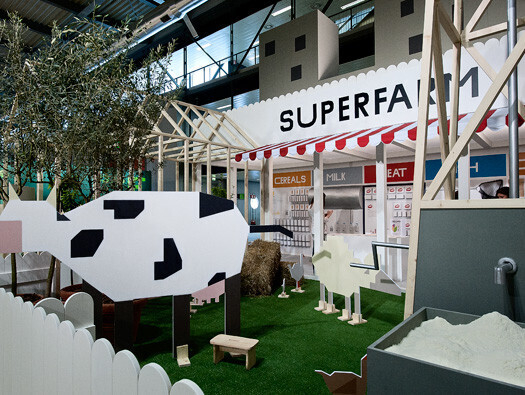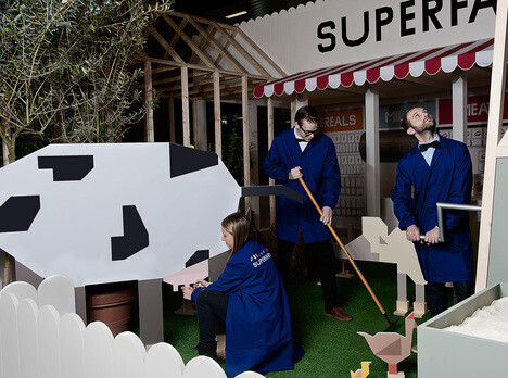 Возможно, последней вещью, которую можно было бы ожидать увидеть на Salone del Mobile в Милане, это ферма. Три проектировщика Hafsteinn Juliusson, Rui Pereira и Joana Pais полагают, что "сельское хозяйство города" будет играть все более и более активную роль в производстве пищевых продуктов. Исходя из этих предположений, они создали установку, названную SuperFarm, чтобы проиллюстрировать, каким в будущем может стать супермаркет.