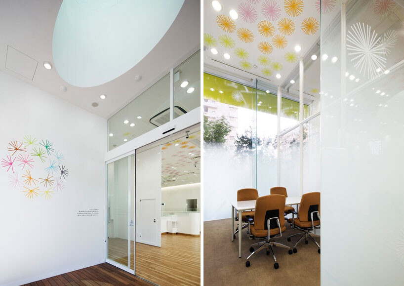 С первого взгляда сложно представить, что это излучающее позитив здание является банком! Однако японские дизайнеры решили уйти от традиционного представления о банке, как о заведении строгом, сдержанном и темном. Это здание в буквальном смысле слова насквозь пронизано светом и яркими красками. Двенадцать цветных плит, символизирующих радугу, возвышаются над белым основанием фасада, постепенно переходя от желтого к синему и сливаясь с небом. Внутри преобладают светлые тона, на фоне которых хорошо смотрятся все те же 12 цветов в предметах интерьера. Несколько стеклянных труб, подобно солнечным лучам, пронизывают все три уровня здания. Удивительная «радуга» горит и ночью.