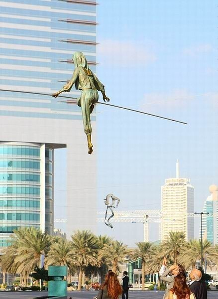 Есть места, где на предметы искусства нужно смотреть снизу вверх. Парящие фигуры, летающие акробаты, застывшие мгновения. Каждое из этих произведений – дело рук польского скульптора Jerzy Kedziora, человека, который смог придать тяжелому материалу свойства легкости и невесомости.