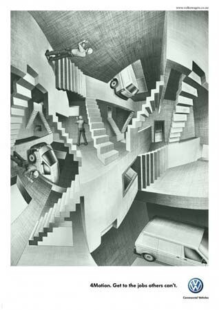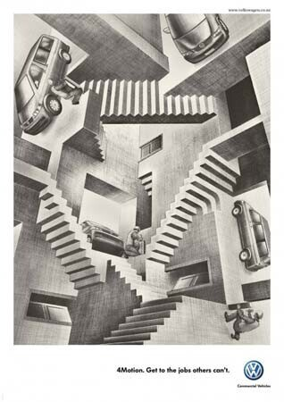 К рекламе знаменитого автомобильного бренда Volkswagen вот уже не в первый раз подходят креативно, с претензией на высокое искусство. Одна из рекламных компаний следует традициям художников-сюрреалистов, таких как Сальвадор Дали и Рене Магритт. Другая – повторяет идею известных карандашных рисунков Эшера, в которых все кажется реальным и в то же время неповторимым в жизни. Что именно хотели сказать в этих рекламных компаниях производители известных автомобилей, остается загадкой. Но желание прививать вкус к искусству, конечно же, заслуживает похвалы.