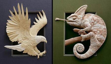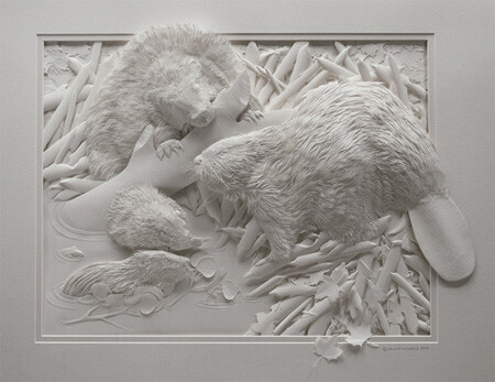 Глядя на эти картины-скульптуры животных сложно представить, как их мог сделать человек. И используя только бумагу. Выглядят они очень натурально. А стоят неимоверных усилий. Их автор - Calvin Nicholls – начал заниматься творчеством еще в 80-х. И как видите сегодня, добился впечатляющих результатов.