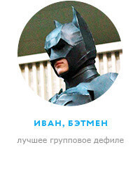 «Я сначала предложил знакомой сделать косплей по Mass Effect, но она отказалась. И тогда меня посетила мысль предложить другу сделать Дезстроука и Бэтмена. Он согласился. Позже к нам присоединились 4 девушки, вот так у нас получилось 6 человек в дефиле: Ядовитый Плющ, Затанна, Вандер Вумен, Харли Квинн, Бэтмен и Дезстроук. Костюм я делал месяца два. На ЮниКоне мне очень нравится: здесь позитив и отличная атмосфера». |