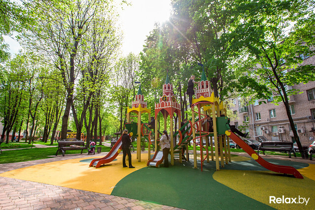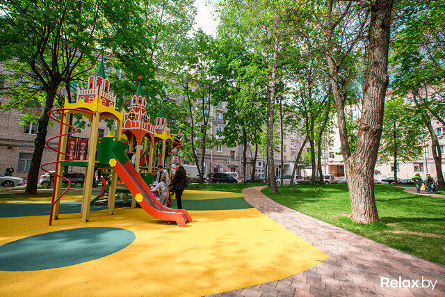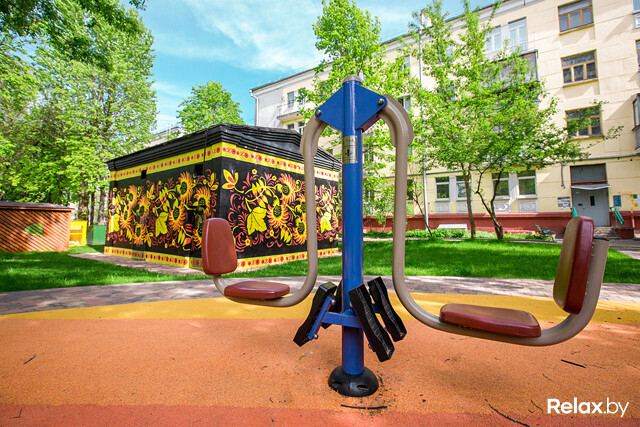 Уголок игровой России для самых маленьких организовали в Минске московские специалисты. Для полного погружения в «Раша-стайл» любуйтесь граффити в виде хохломы на трансформаторных будках. Для поклонников спорта — турникеты, огороженное сеткой футбольно-баскетбольно-волейбольное поле и совершенно бесплатные уличные тренажеры. Беги, бросай, катись. Москоу невер слип, одним словом.
