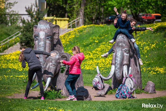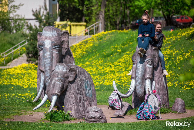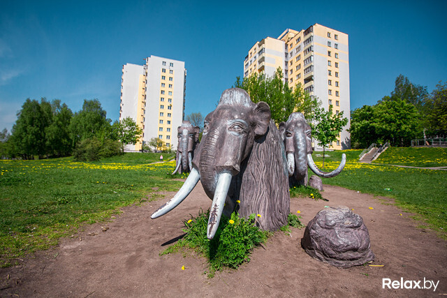 Если прогуливаться по Калиновского, можно угодить во временную дыру: посреди одуванчикового поля вы повстречаете семью мамонтов. Можно залезть им на спину, потягать их за бивни и позадавать им риторические вопросы. А можно просто забацать отличное селфи.
