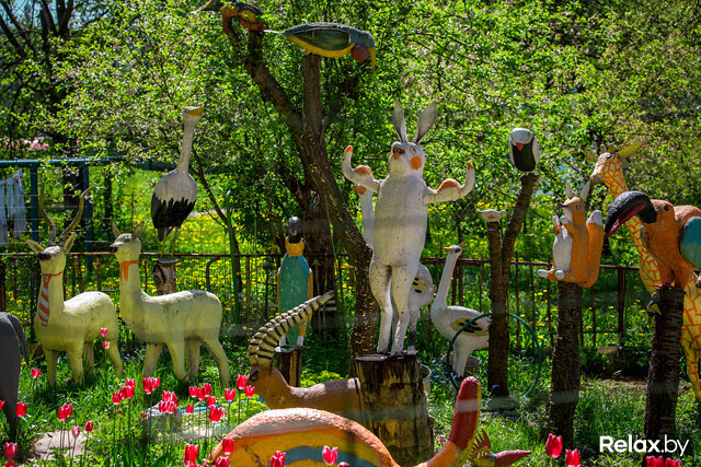 — Понимаете, что это за человек! А фантазия, какая фантазия! — восторженно кивает в сторону Анатолия Владимировича его товарищ, который находит для зоопарка старые советские холодильники - в них удобно складировать материалы. Вы можете посмотреть на эти разрисованные холодильники рядом с вольерами для животных. А также — на фонтанчик, палатку-мастерскую и еще одно увлечение Анатолия Владимировича — небольшой сад под окнами дома. Там деятельный скульптор разводит тюльпаны и розы.