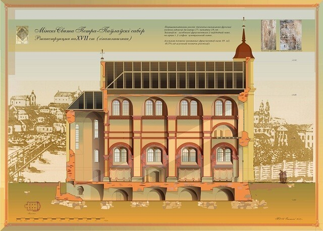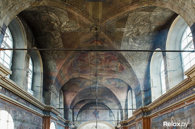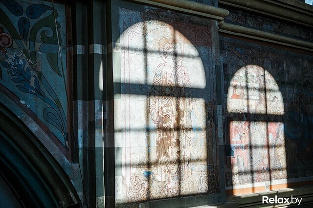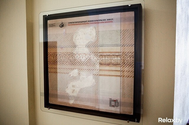 Это уникальное здание. В 1863 году костел и монастырь закрыли и сделали в них тюрьму, которая простояла до советских времен. Когда ее убрали, позвали нас. Мы исследовали все 8000 кв. метров, искали живопись. Нашли. Сейчас, когда в бывшем здании монастыря сделали отель «Монастырский», по коридорам эти фрагменты сохранили в витринах.