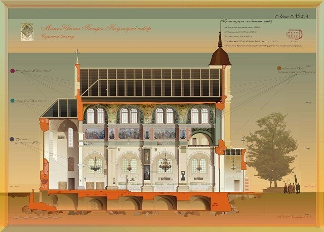 Было восстание Костюшки, в 1794 году его подавили, и императрица Екатерина пожертвовала деньги на обновление церкви. Ее расписали заново, а значит, старые фрески уничтожили. И церковь назвали Екатерининской, хотя она всегда была Петропавловской. 1863 год — восстание Калиновского. После его подавления наступили новые времена — церковь расписали мастера-академисты, участвующие в росписи Исаакиевского собора Петербурга. Византийский орнамент, и не только, соопределял эстетическое направление, даже была сделана попытка изменить внешний облик: храм был увенчан фальшкуполом.