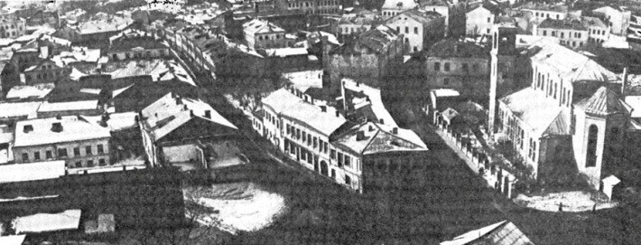 Тут была гимназия, в которой учились Станислав Манюшка, Ядвигин Ш., Александр Ельский. К слову, напротив места, где сейчас стоит отель «Европа», находился 4-этажный дом (в 80-е его разобрали), там впервые ставилась «Селянка» Манюшки.