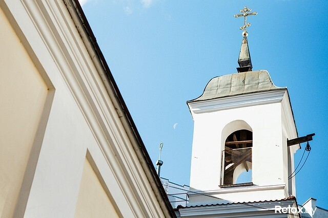 Когда строили церковь, король ВКЛ разрешил построить православный храм, но чтобы он имел вид европейский. Так что никакого купола изначально не было. Я даже когда-то предлагал фальшкупол тоже восстановить, но поставить рядом с церковью и сделать там киоск.