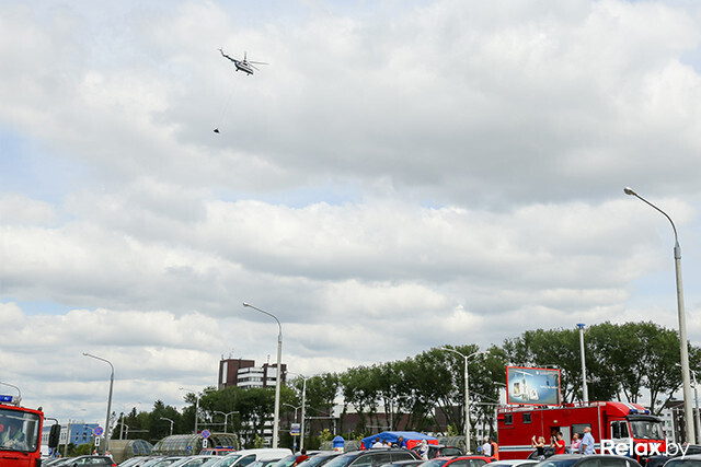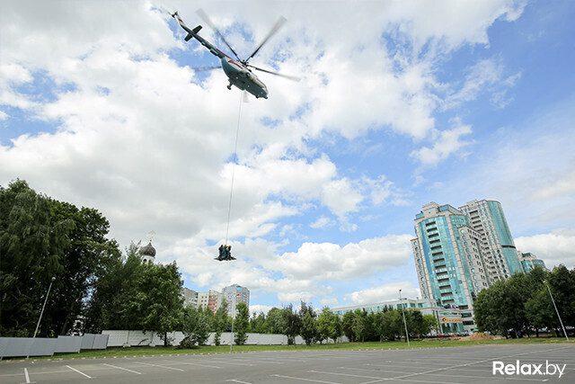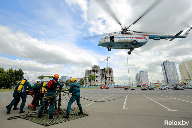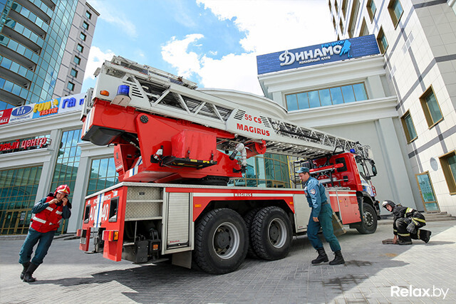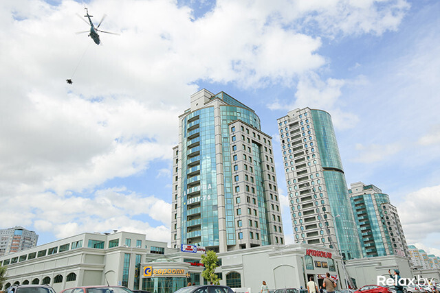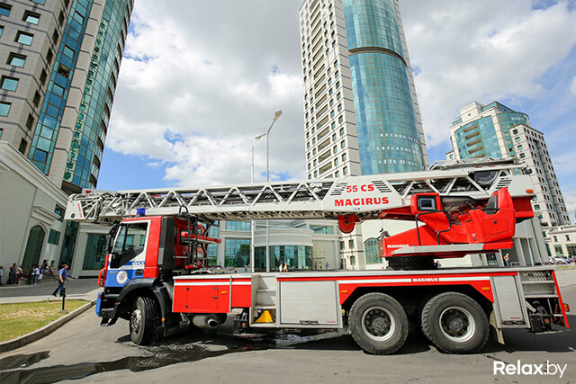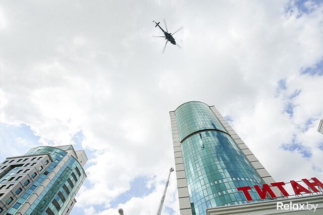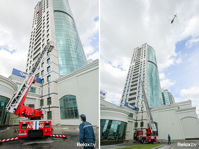 В Минске прошли масштабные учения МЧС, на которых впервые отрабатывали тушение пожара на 26-м этаже и на крыше небоскреба. Высадка с вертолета, полеты в «люльке» над землей, душ с пожарного рукава, рев сирены ― все это происходило на глазах удивленных посетителей многофункционального комплекса «Титан» на проспекте Дзержинского.