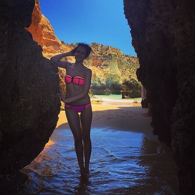 Из Instagram Инессы: «Португалия!!! Невероятные пляжи. это маленький проход в потрясающе красивую бухту, которая доступна только во время отлива ... Обратно, если не успел, то только вплавь))! Или по канату наверх (хотя волны здесь такие мощные, что сомневаюсь в такой физподготовке). Красота неописуемая и немного экстрима! То, что доктор прописал».