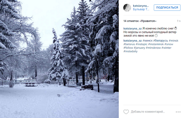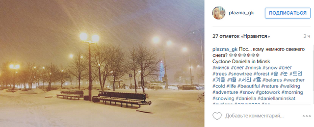 Instagram: «Господа, расчехляйте лыжи!», или Как минчане оценили циклон Даниэлла