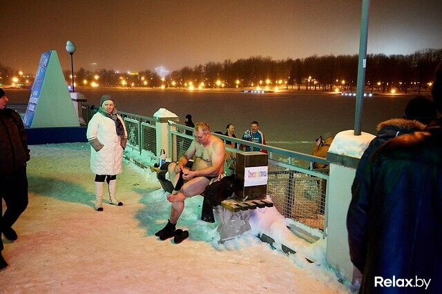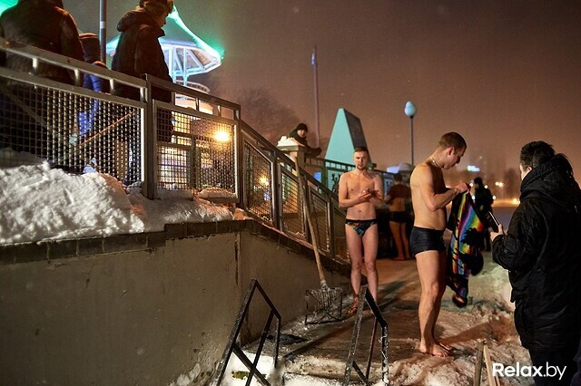 Окунуться в прорубь на Крещение в Беларуси можно в районе всех 66 спасательных станций. Минчане могут выбрать одну из 9 станций. Relax.by сфотографировал первых смельчаков, которые нырнули в прорубь на Комсомольском озере.