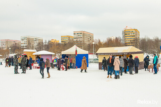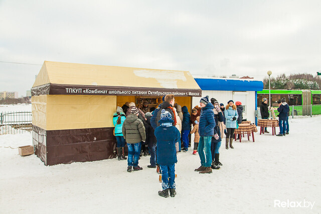 Проходили соревнования по горнолыжному спорту с участием спортсменов из разных регионов. На лыжах катались несколько сотен человек. Выступала юниорская сборная Беларуси по фристайлу. Для внутреннего тепла установили точки с безалкогольным глинтвейном, чаем и кофе.