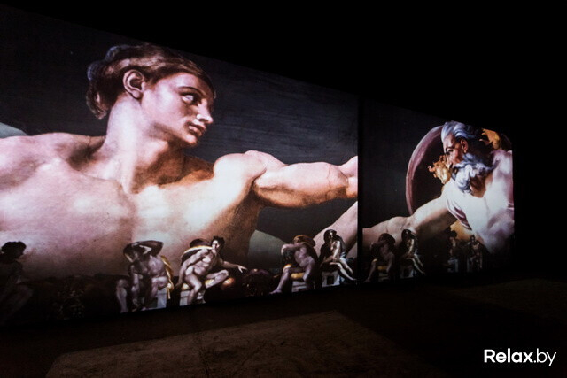 , на которой можно увидеть «ожившие» на больших экранах знаменитые фрески Сикстинской капеллы, а также работы Леонардо да Винчи, Рафаэля, Джотто, Боттичелли и Тициана.