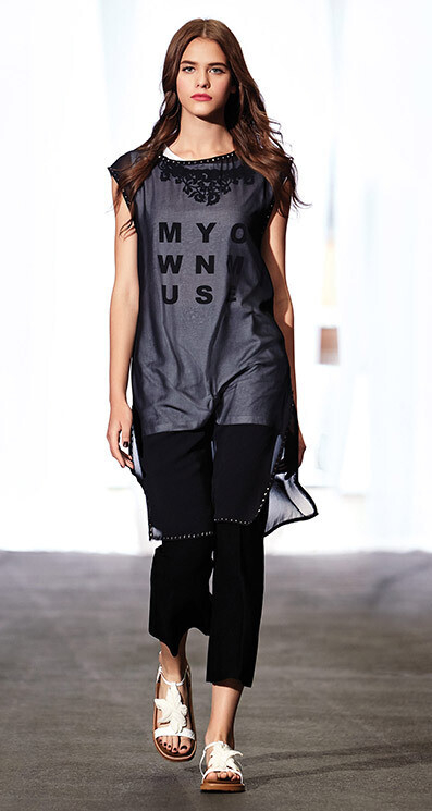 Романтичные коллекции Twin-Set совмещают различные стили и направления; они насыщены нарядами с кружевами из хлопка и муслина, с вышивкой и принтами, с этническими мотивами и сочетанием белого и черного.