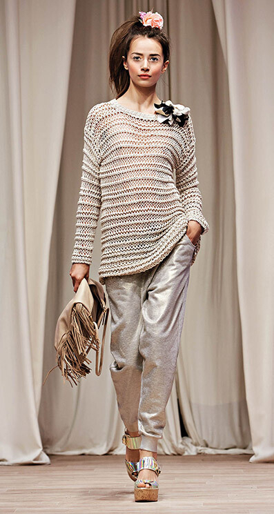 Королева трикотажа Liviana Conti играет с формой и новыми силуэтами. Дизайнеру удается добиться женственности и утонченности на базе бесформенных, асимметричных, сложно задрапированных и многослойных вещей.