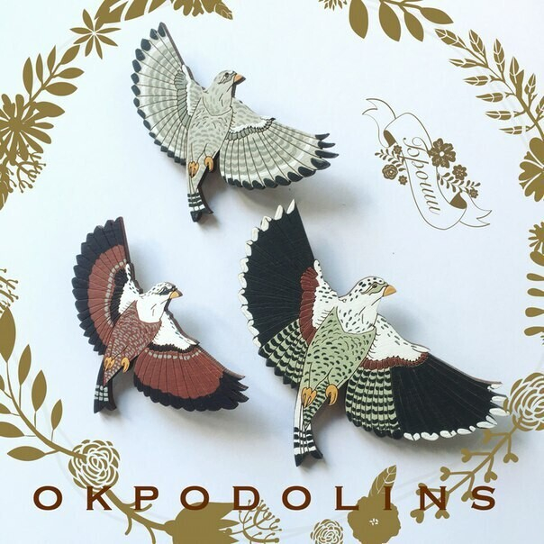 05 Деревянные броши, расписанные вручную от бренда Okrodolins