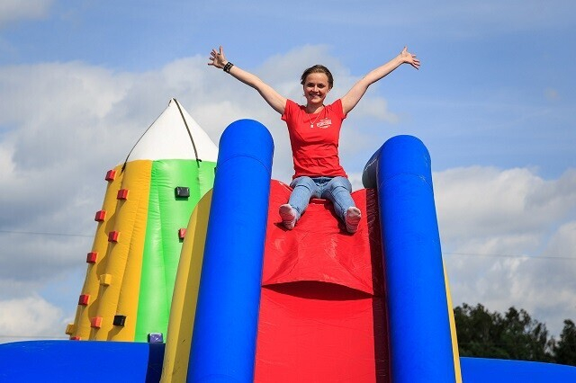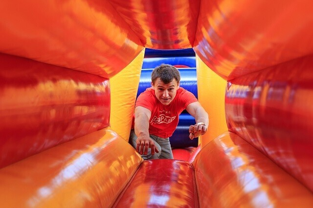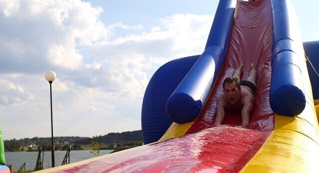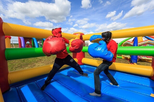 Есть здесь и эксклюзивные предложения. Например, экстремальный аттракцион Slip’n’slide (скользкая дорожка): попробуйте устоять, скользя по надувной поверхности. Или мягкий скалодром «Айсберг» (надувная рельефная скала). А мобильную трассу GTO Race оценят любители полосы препятствий: тут найдутся грязь, веревки и деревянные преграды высотой до 2 метров.