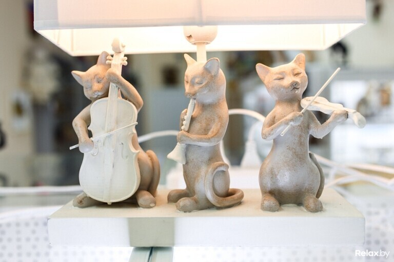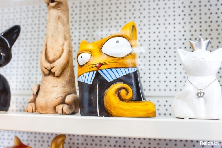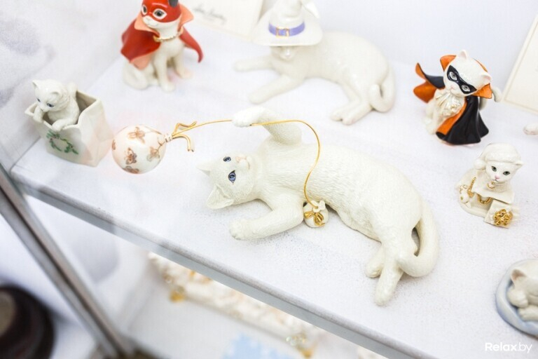 А посмотреть в этом мини-музее и правда есть что: часы, статуэтки, вазы, посуда, монеты, кашпо, украшения, шкатулки, лампы, картины, бутылки с алкогольными напитками, держатели для книг, елочные игрушки, флаконы для парфюмерии, подсвечники и аромалампы, емкости для продуктов, зеркала, игрушки, канцтовары, ковры, колокольчики, копилки, водопроводные краны, маски, мыло и мыльницы, наперстки, пепельницы и зажигалки, перечницы и солонки, фоторамки, садовые фигуры, свечи, свистульки, фонтаны и водопады, чайники, шахматы, игры и даже урны для праха котов — словом, все, что можно себе только представить. Полюбоваться котиками можно ежедневно.