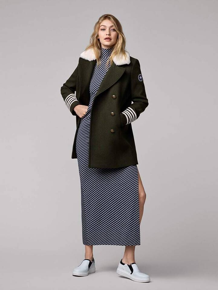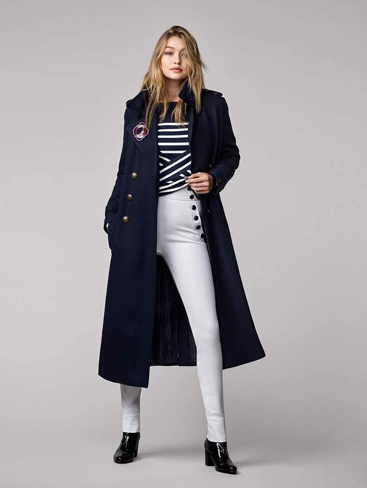 Лейтмотивом осеннее-зимней коллекции TommyxGigi стала морская полоска и буква G, обвивающая якорь. В ассортимент вошли одежда, обувь и аксессуары. По словам дизайнера, совместная коллекция — это новый, игривый и романтичный взгляд на морскую тематику.