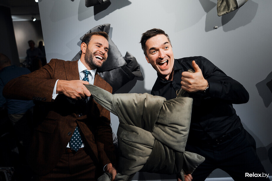 Вечеринка прошла в шоуруме мануфактуры, отличный маркетинговый ход: гости располагались на диванах, пуфах и креслах, присматривая новые покупки в дом. Дмитрий Кохно, ведущий вечера, склонял всех пить просекко и общаться, обещая, что вот-вот представят сюрприз.