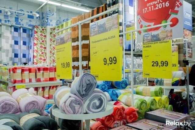 на ул. Горецкого, 2. На территории площадью 2300 м2 представлено около 3000 видов самых разных товаров: диваны, кровати, столы и стулья, комоды, тумбочки, подушки и одеяла, постельное белье, коврики, посуда, свечи, стеллажи и корзины для хранения вещей, коврики, кроватки для животных, детские игрушки, новогодние гирлянды, украшения и праздничные аксессуары — для того чтобы все рассмотреть, понадобится немало времени.