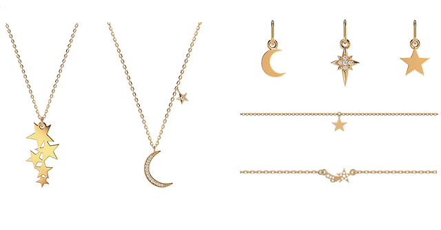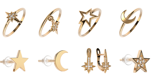В минималистичной коллекции Happy Moments все изделия подходят друг к другу, так что их можно смело сочетать. Она представлена двумя линиями украшений: в виде сердец и смайлов, а также в виде звезд и комет.