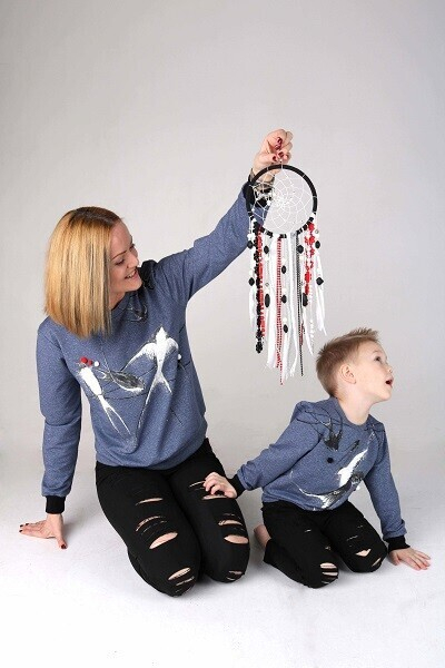 Последняя коллекция Kuriza Pomada «Крылатые Сны» выполнена при участии художницы Марины Солонец (рисунки на свитшотах — роспись специальными красками), а дополнены образы стильными сумочками ручной работы от Анны Пстыги и ловцами снов HandMade от Юлии Солдатенковой. Каждый из комплектов представлен в единственном экземпляре. Стоимость — от 150 до 160 рублей.