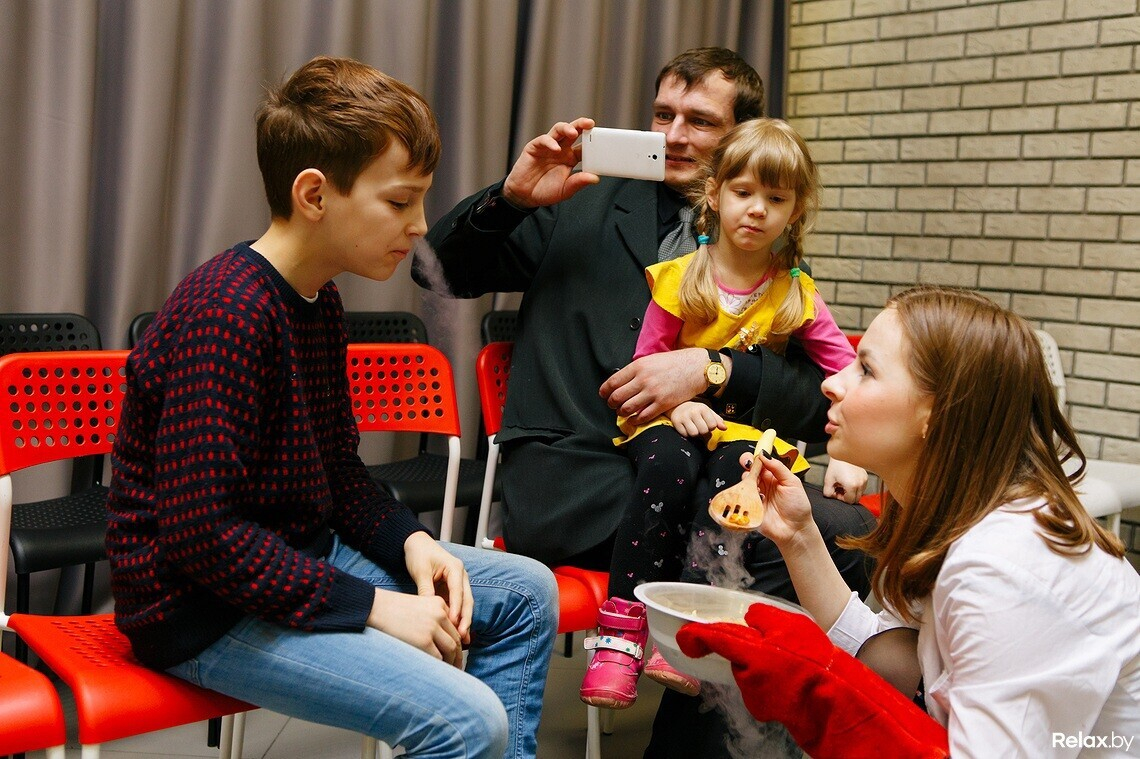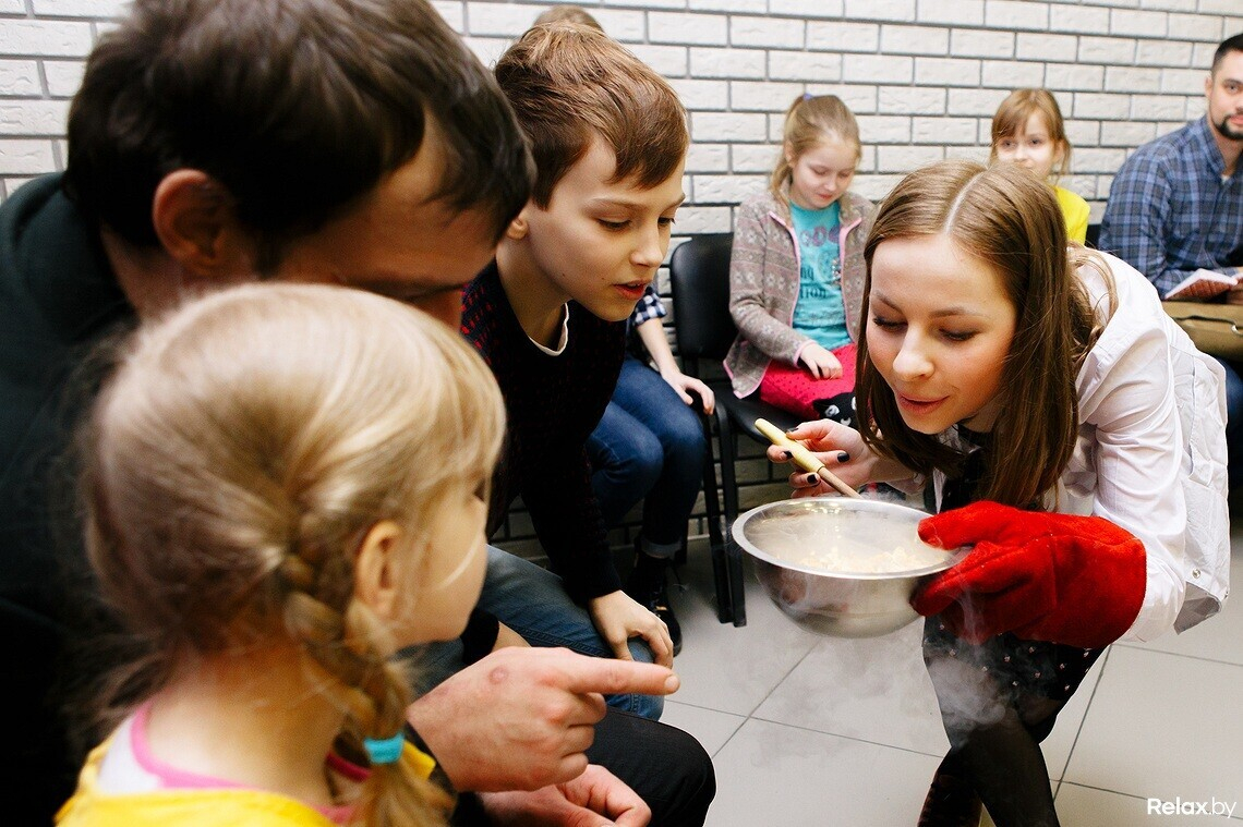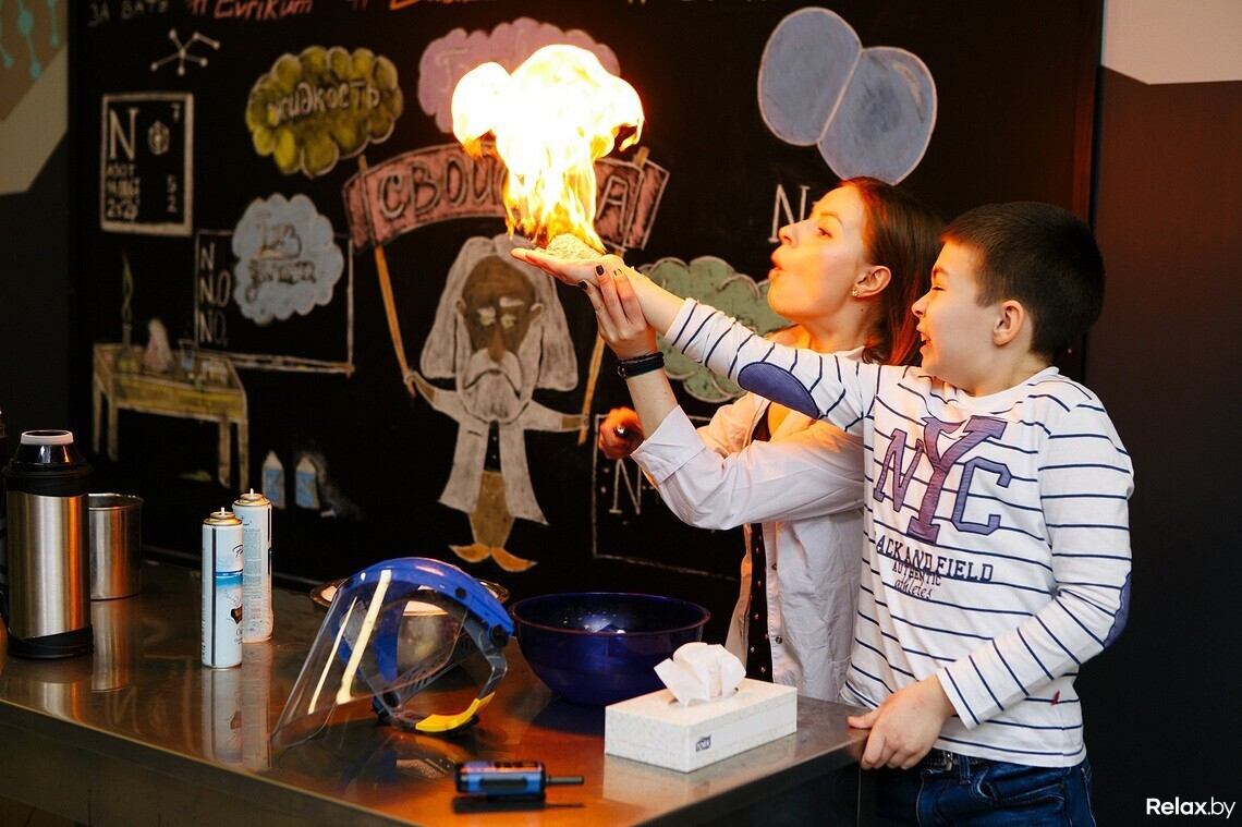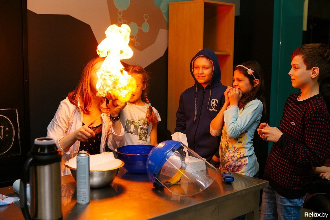 После экспериментов с жидким азотом не мешало бы согреться. «Волшебная пена единорога» — так лаборант Аглая называет горючую смесь. Секрет состава хранится в тайне, чтобы у маленьких Эйнштейнов не возникло искушение похимичить дома. А здесь можно безболезненно поджечь собственную руку и получить море впечатлений.