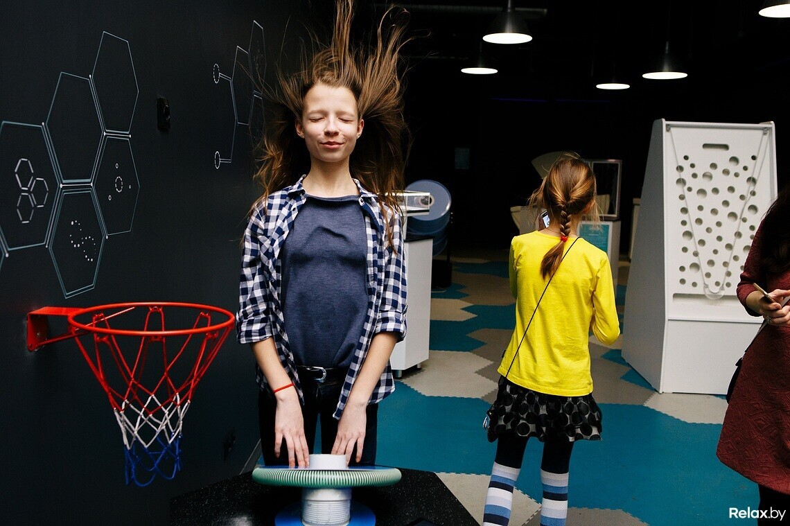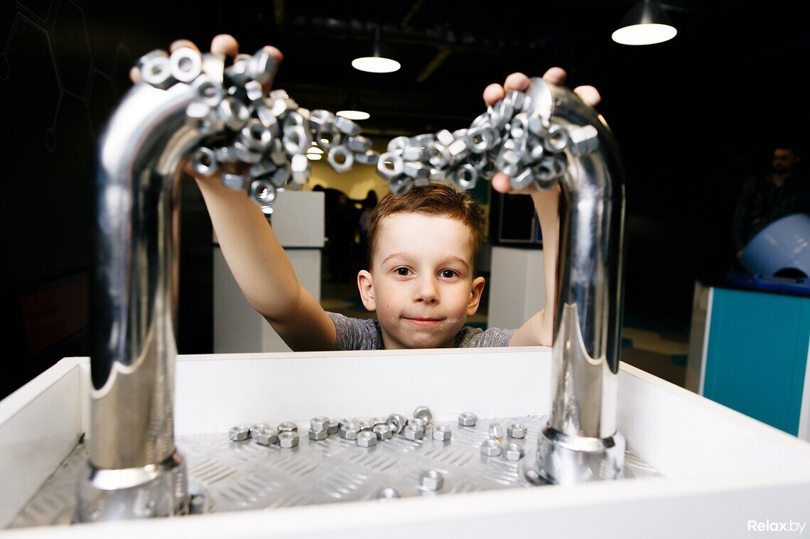 В IQ-парке царствует ее величество Физика. Здесь все шевелится, вращается, магнитится, искрит и даже дымится. Любой экспонат можно вполне безопасно потрогать. Даже электричество. Плазменная лампа — один из любимых аттракционов. От аниматоров дети узнают, что ее — а также кучу других полезных вещей — придумал Никола Тесла. А поддуваемый воздухом мячик — иллюстрация закона Бернулли. В учебнике физики он выглядит весьма зубодробительно. А здесь все наглядно: отклоняешь трубу — мячик отклоняется следом. Интересно ведь!