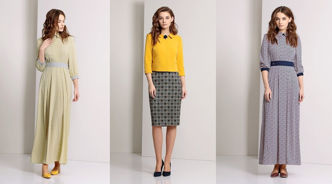 Новую коллекцию называют особенно функциональной: такая подойдет и для похода в кино, и для романтического ужина, и для делового обеда. Найдете стильные блузки (в том числе, с актуальными цветочными принтами), классические женственные платья, юбки, элегантные жакеты, удлиненные жилеты, брючные костюмы.