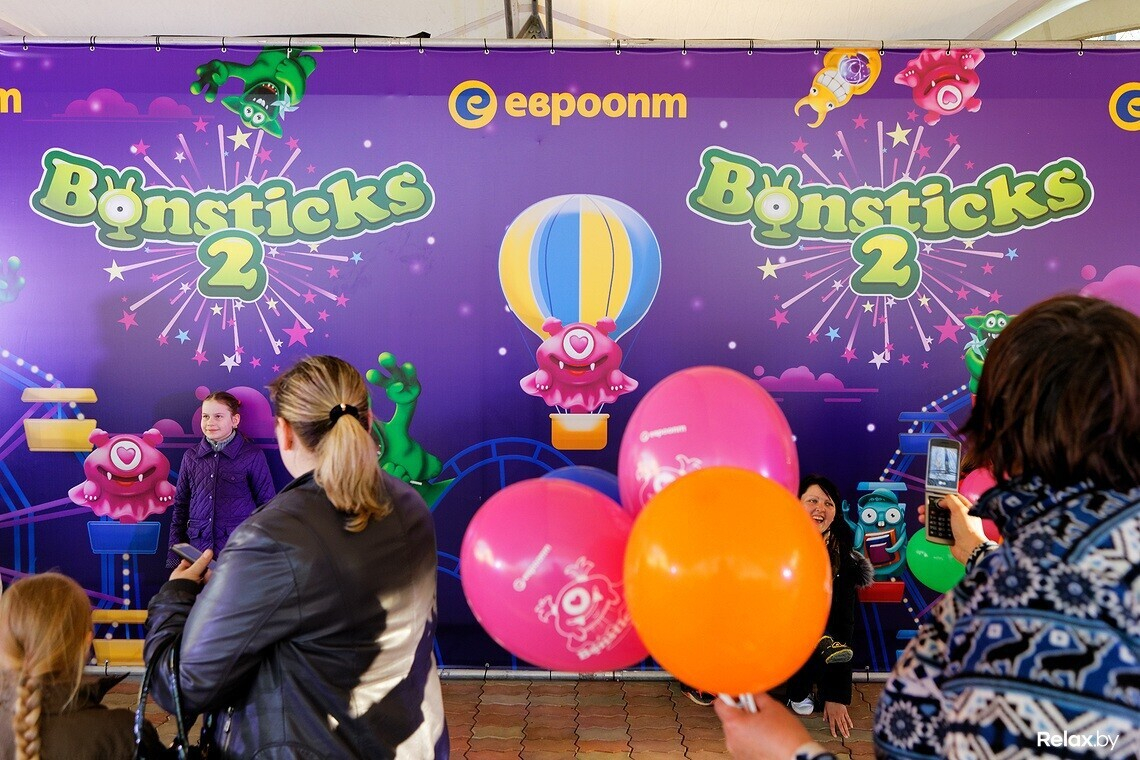 Бонстики — игрушки-липучки, появившиеся в сети магазинов «Евроопт» и успевшие завоевать немало поклонников среди детей и взрослых. За каждые 15 рублей в чеке покупатель получает одного из них. Персонажи, которых сегодня увидели посетители парка DreamLand, — уже вторая серия забавных монстриков.