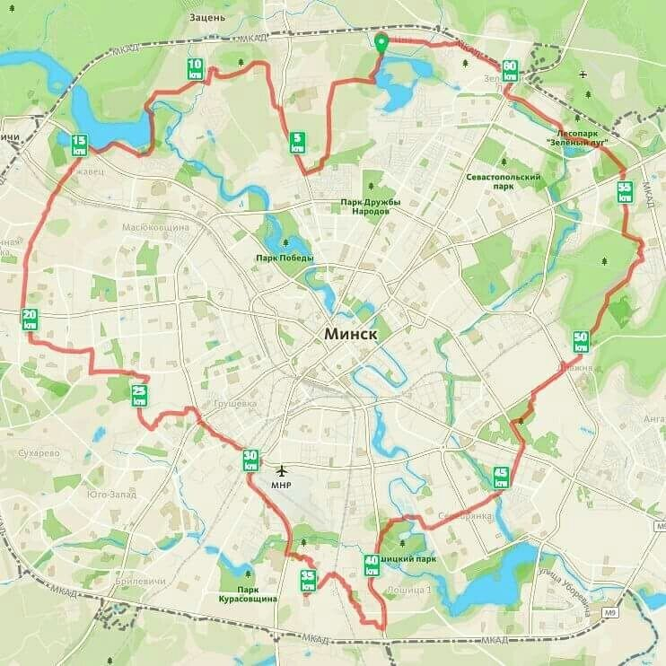 60-километровое сердце вокруг Минска в эти выходные нарисовали семеро представителей бегового проекта YOUCAN: каждый преодолел около 10 километров в окрестностях белорусской столицы и передал другому эстафету – смартфон с включенным приложением-трекером. В результате и получился символический рисунок – «сердце Минска».