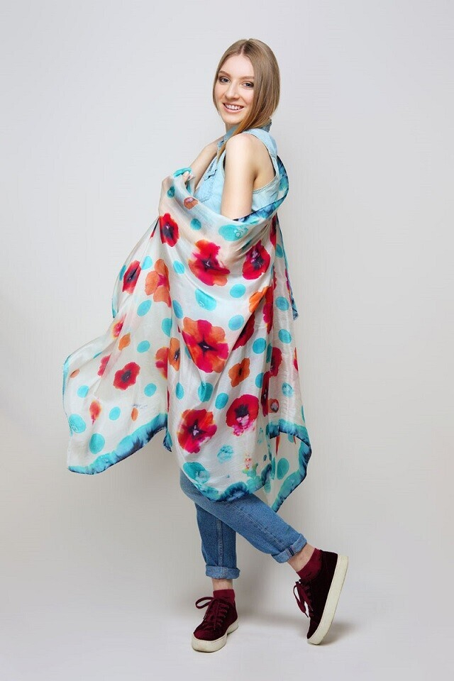 08 Шелковый платок-палантин, расписанный вручную, от Елены Суровцевой