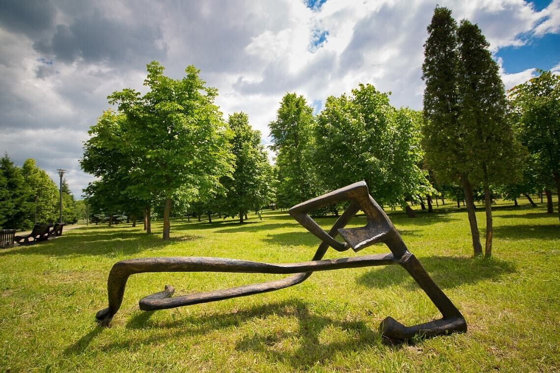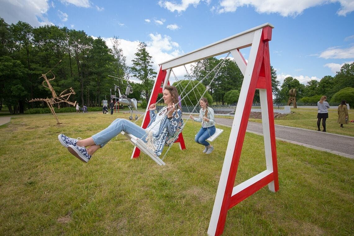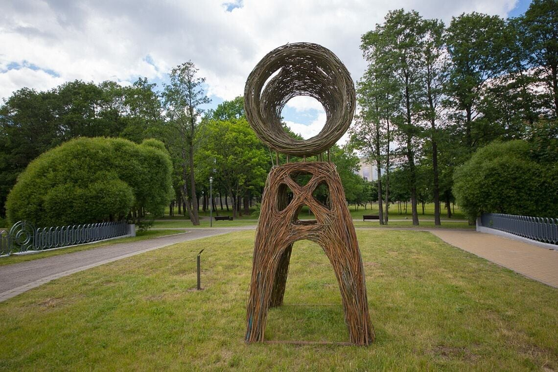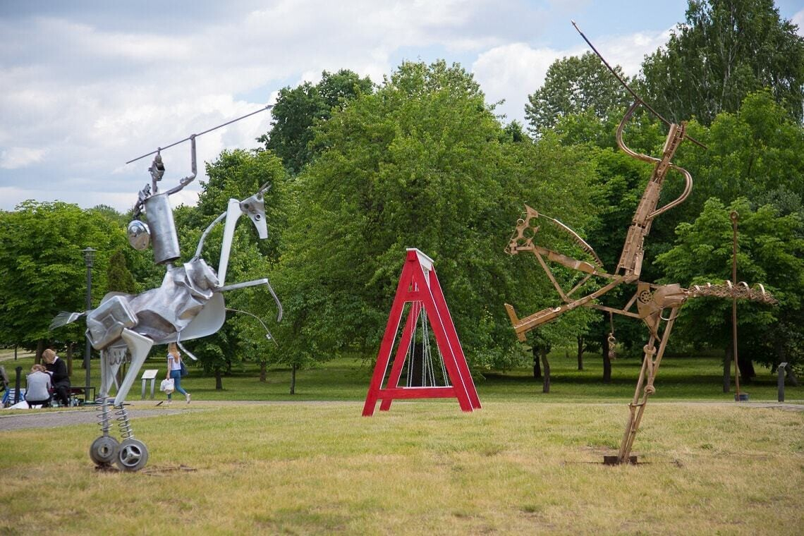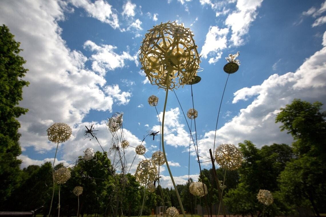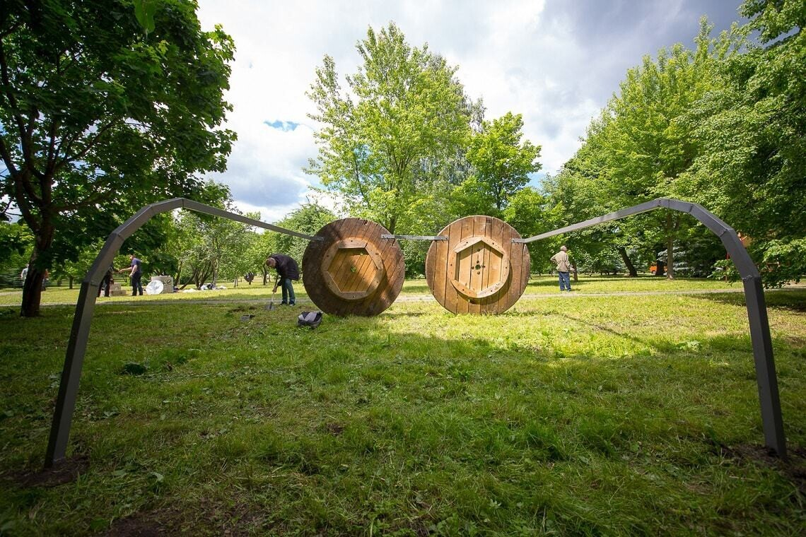 На острове Комсомольцев в центре Минска открылся арт-парк с масштабной экспозицией из 12 огромных объектов современного искусства. Тут можно посмотреть на железных воинов времен Полоцкого княжества, огромных размеров очки, «колодцы» с городскими секретами, плетеный «локатор» и многое другое.