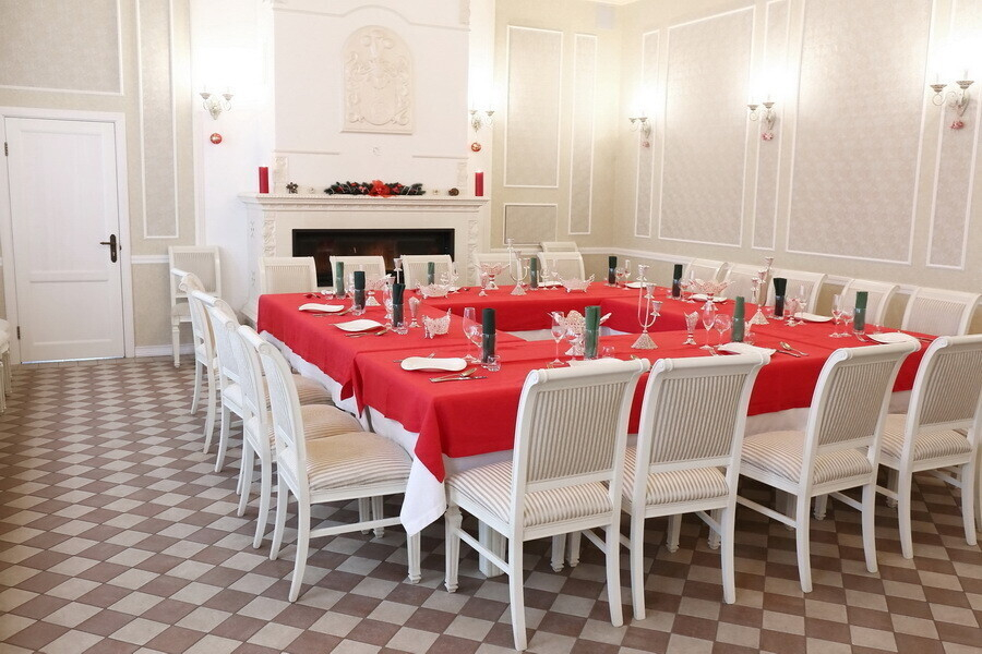 Помимо традиционного набора развлечений — банкетного зала, музыкальной гостиной, бильярда, — усадьба «Красное» предлагает активный отдых на воде: прогулки на байдарке, сапсерфинг (стоя на специальной доске с веслом) и катание по Березине на катере с посещением необитаемых островов посреди реки.