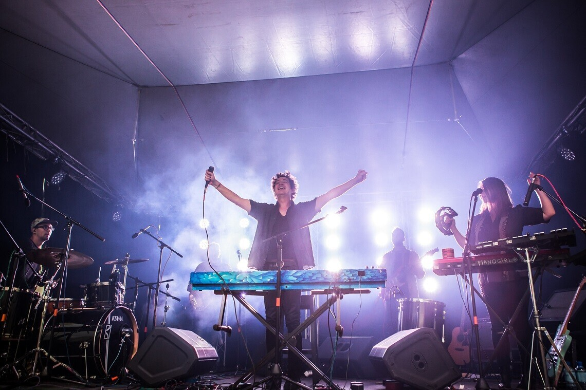Вчера в Новой Боровой прямо под открытым небом прошел первый минский концерт бывшего пианиста «Океана Эльзы» и Земфиры. Pianoбой играл прямо по дворе; зрители смотрели концерт с террас и крыш, через распахнутые окна.