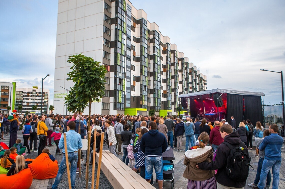 Шоу украинских музыкантов из дюжины их самых популярных композиций прошло на недавно открытой центральной площади Новой Боровой, где есть свой небольшой амфитеатр, специально созданный для живых выступлений. Концерт приурочили к появлению несерьезной конституции района (к примеру, одно из правил гласит: «Каждый имеет право отметить день рождения во дворе: пригласить соседей, получить подарки и даже устроить концерт на центральной площади»).