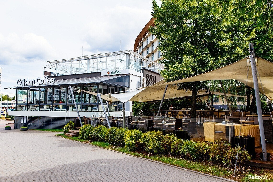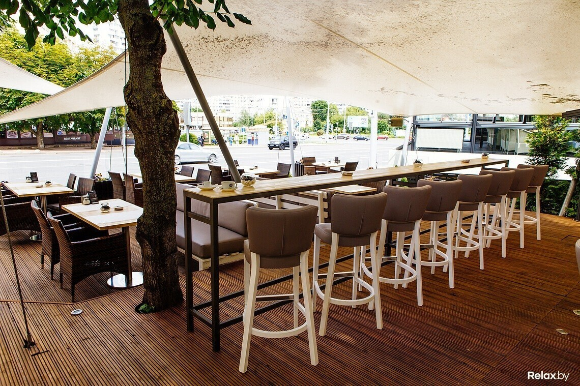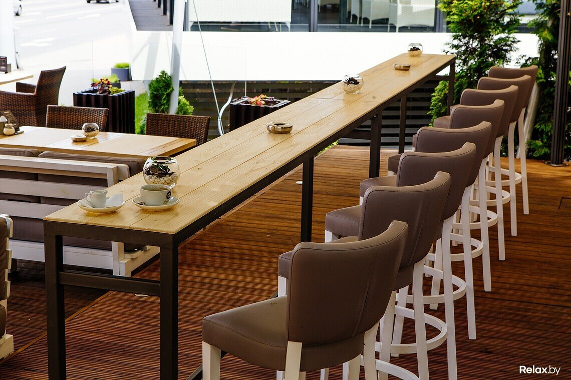 Летнюю террасу в самой опытной точке сети Golden coffee на ул. Богдановича решили сделать веселее: теперь в окружении зелени и под открытым небом тут стоит контактная барная стойка, за которой трудятся бармены и откуда можно понаблюдать за оживленным минским центром.