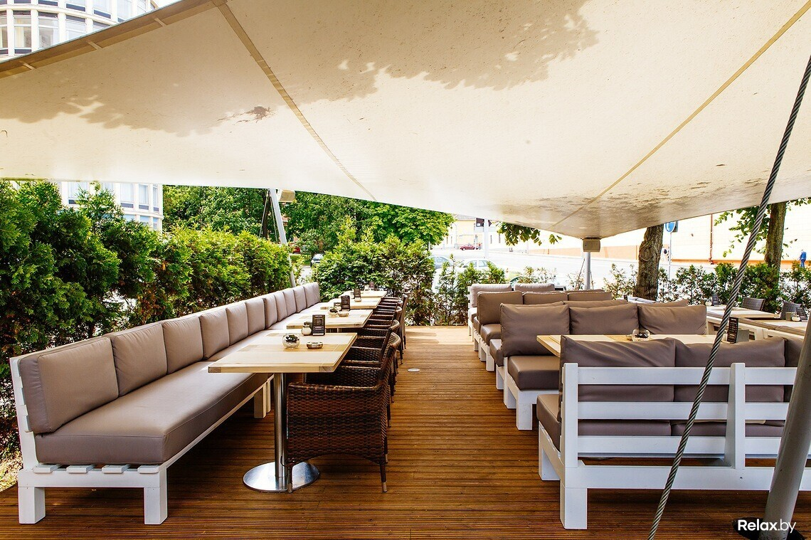 Примечательна терраса режимом работы: в городе, по словам создателей, не найти террасы, открытой позже 2:00; здесь же двери закрывают лишь с уходом последнего гостя. В хорошую погоду тут звучит живая музыка или DJ-сеты. Помимо контактной барной стойки, появились высокие столы, обновилась вся мебель (теперь расположиться можно на пухлых диванах или плетеных креслах из ротанга). Вместить она способна сотню гостей. Стоит напомнить, что в коктейльной карте локации — более 50 авторских коктейлей.